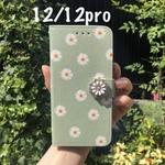 iPhone11/11pro/11proMaxケース 強化ガラス北欧花柄 グリーン