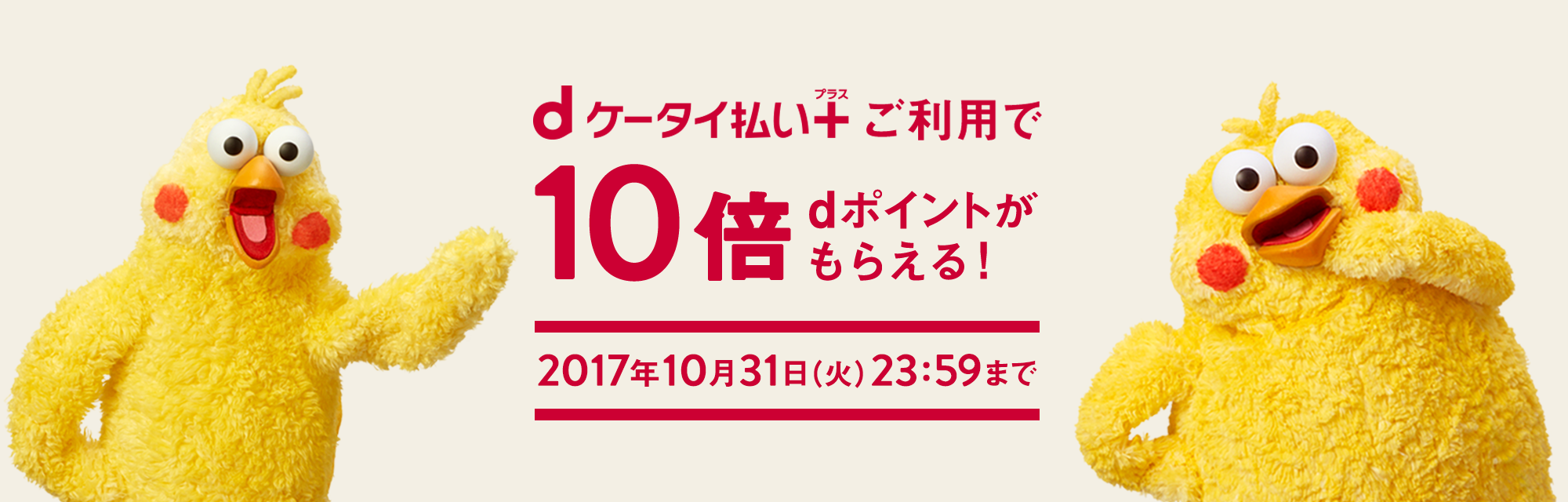 本キャンペーンにエントリーの上、期間中にdポイント利用者登録をしていただき、「dケータイ払いプラス」でお買い物いただくと、お買い上げ金額に応じてdポイントを通常の10倍プレゼントします。