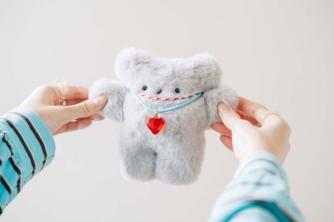人とぬいぐるみの関係にも、多様性の時代を感じています。連れて歩いたり、服をつくったりと、楽しみ方は人それぞれ。だからこそ、その人にとっての「いちばん愛らしい存在」になれるよう、形や構造はなるべくシンプルに仕上げています。 一方で、表情にはフェルトを使って白目や舌をつくり、どこか愛嬌のある「いじらしさ」を大切にしました。素材は実際に触れて「いいな」と感じたものだけを選んでいます。特に毛足の長い生地は、ブラッシングで表情が変わるのが面白くて定番になりました。最後まで完成図が読めないところも、制作の魅力ですね。