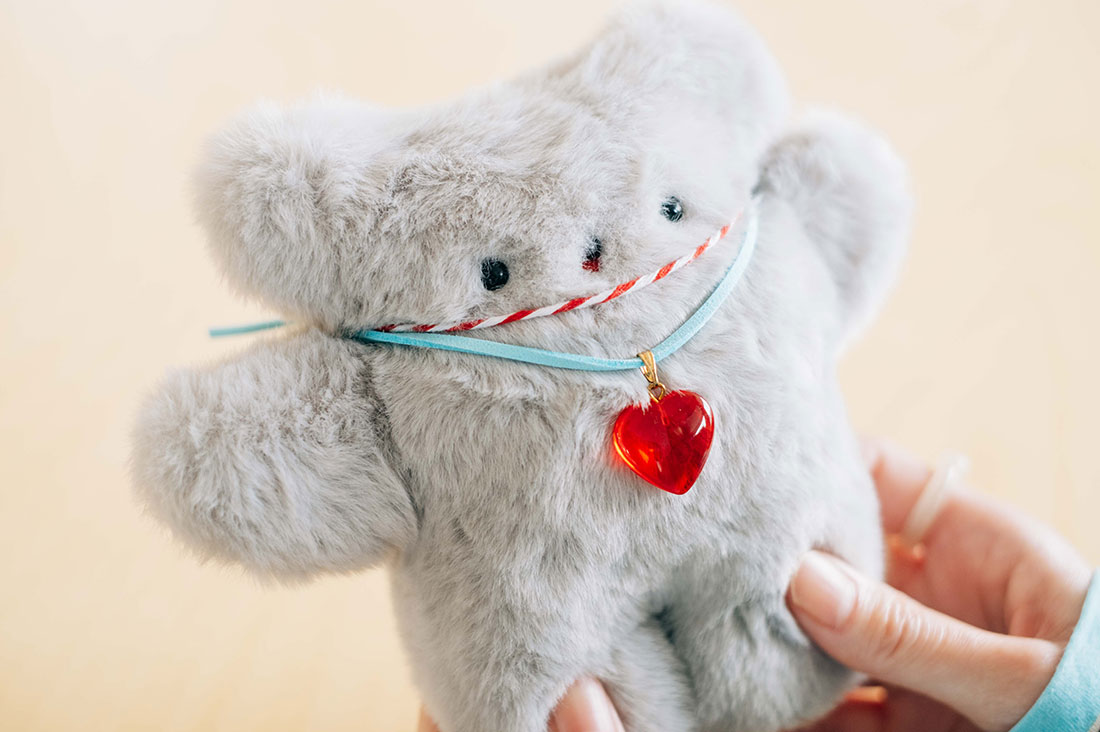 黒ゴマをイメージした「せさみちゃん」という名前も、この子にぴったりで、お家でもそのまま呼んでいます。一緒についてきたガラスのハートチャームも、この子の「心」のように感じられて、なんだか嬉しくて、ずっと身につけたままです。