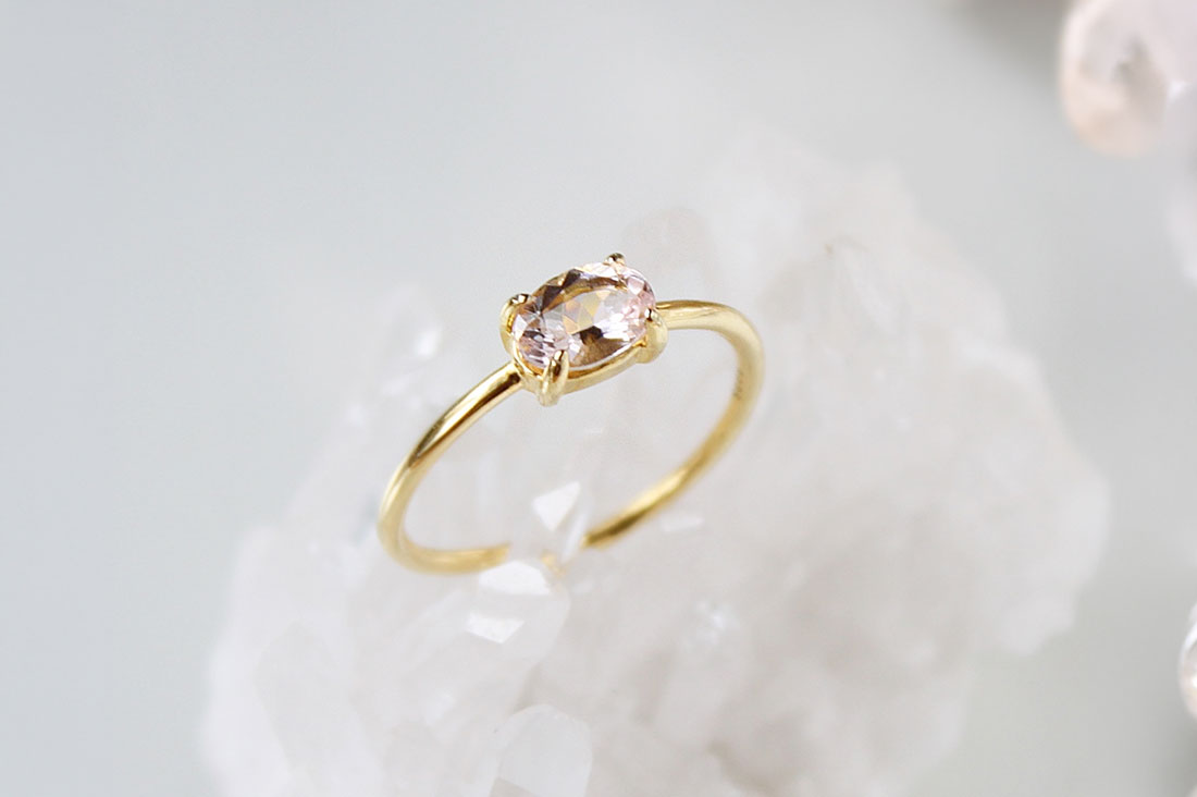 儚げな薄桃色がかわいい一粒リング。華奢で繊細なデザインで、シーン問わず身につけられる一本です。サイズ調整が可能なので、気分に合わせてお好きな指で楽しむことができますよ。